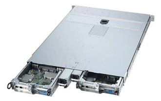 Two hot-pluggable systems (nodes) in a 1U form factor. Each node supports the following: